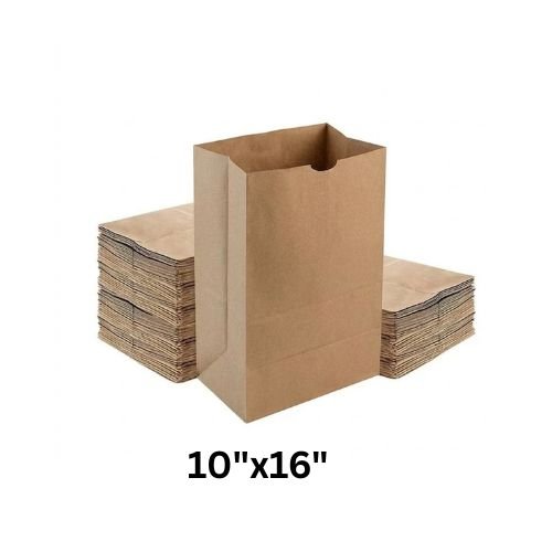 Paper Brown Takeway Disposable Kraft Grocery Paper Bags Without Gusset Food Grade - 10"x16" (Pack Of 100)