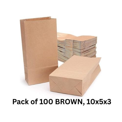 Brown Paper Bags, Kraft Paper Shopping Bags for Grocery and Retail 10x5x3 in 100 Pack of 100 (BROWN, 10x5x3= 100)