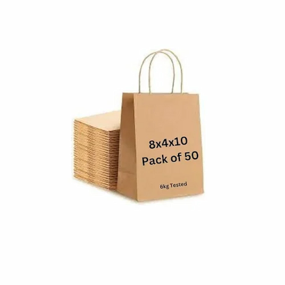 Brown Paper Bags, Kraft Paper Shopping Bags for Grocery and Retail 10x5x3 in 50 Pack of 50 (BROWN, 10x5x3= 50)