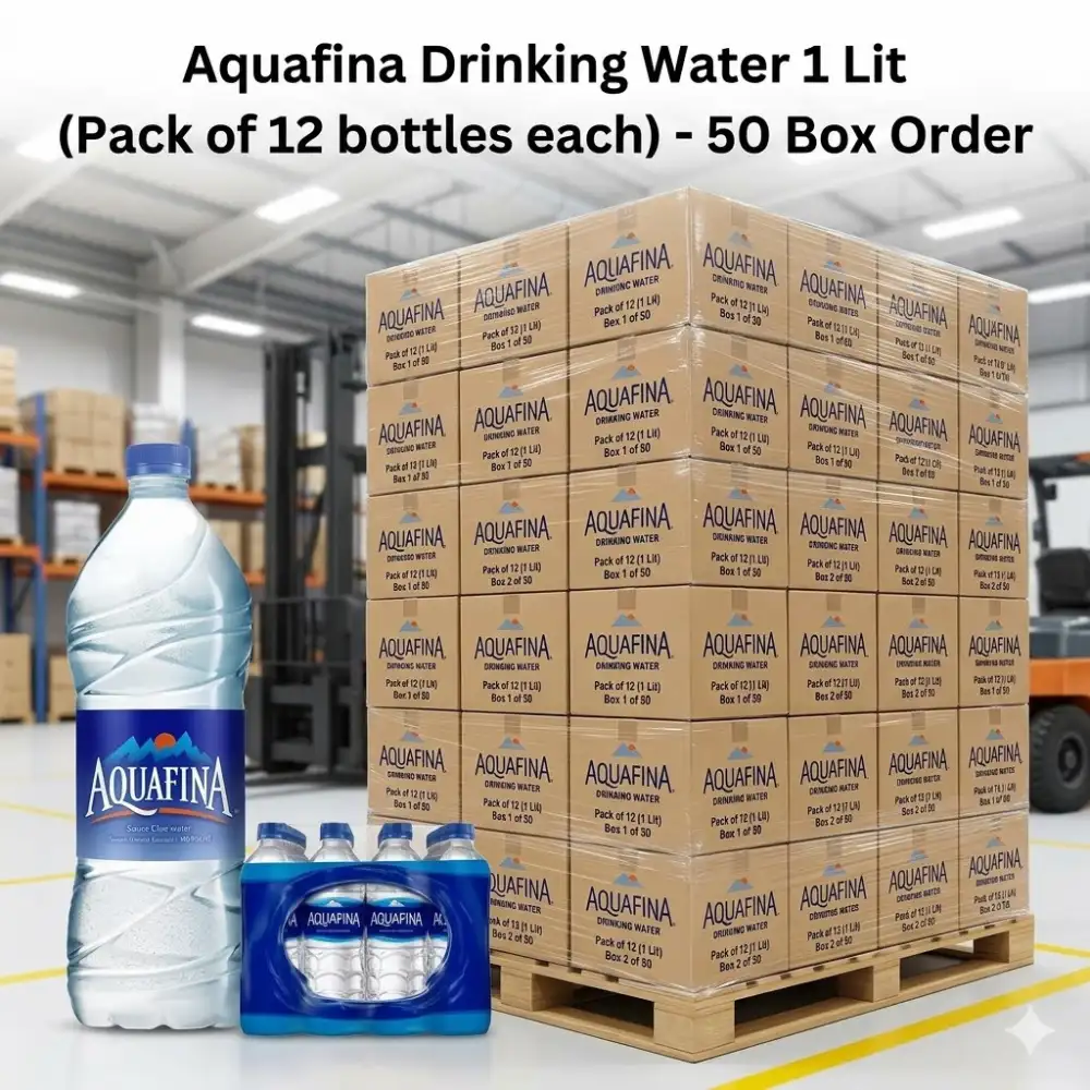 Aquafina Drinking Water 1 lit 50 Box ( Pack of 12 each Box), MRP-20| 11.25/pc for 600 bottle