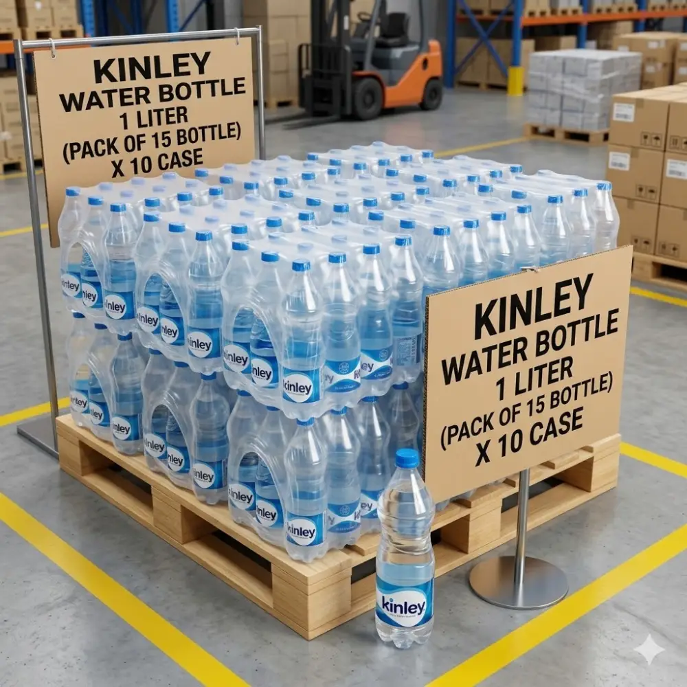 Kinley Water Bottle 1 Liter (Pack of 15 Bottle ) X 10 Case, MRP- 20| 11.90/pc for 150 bottle.
